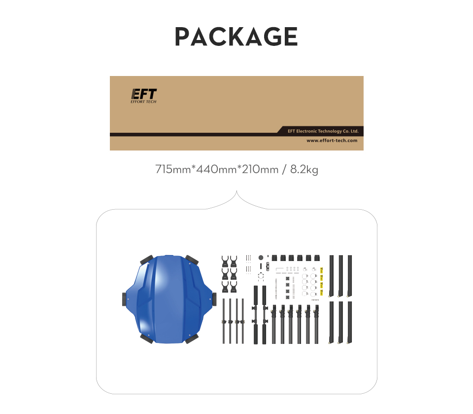 High quality EFT E616P 16kg payload hexacopter drone frame long range delivery drone parts with hobbywing X8 motors