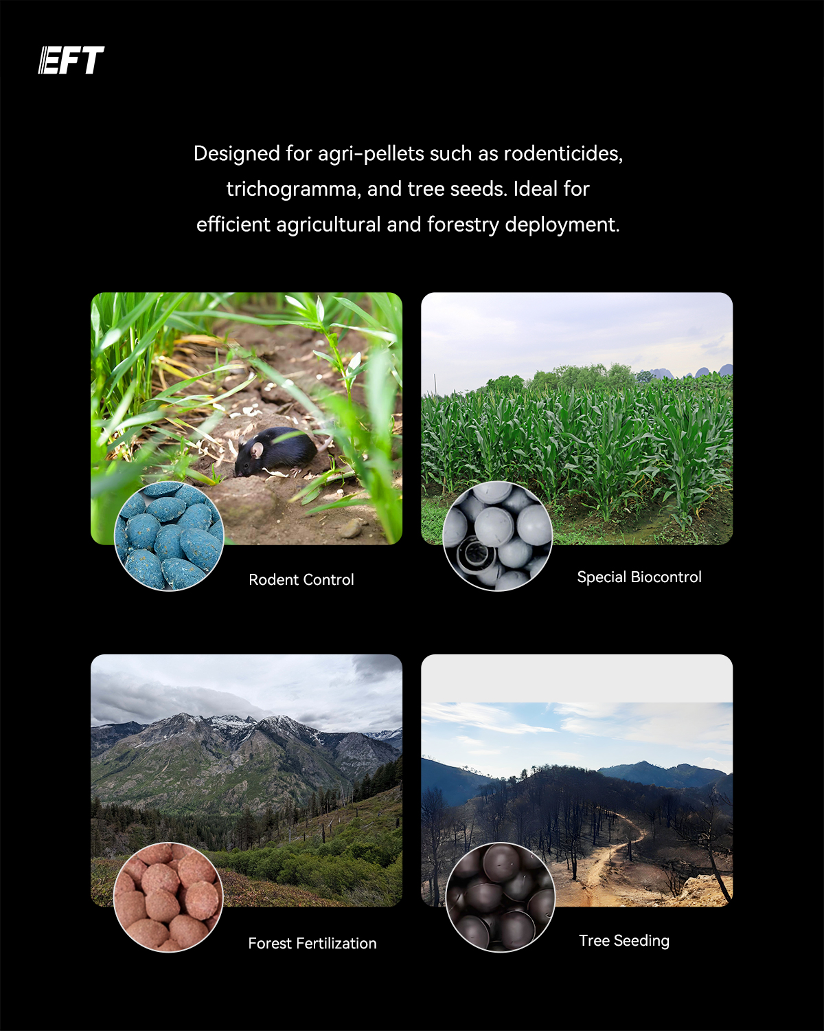 EFT EPD100 Pellet Dropper design for 20-40mm agri-pellets making special-material spreading easier efficient spreading