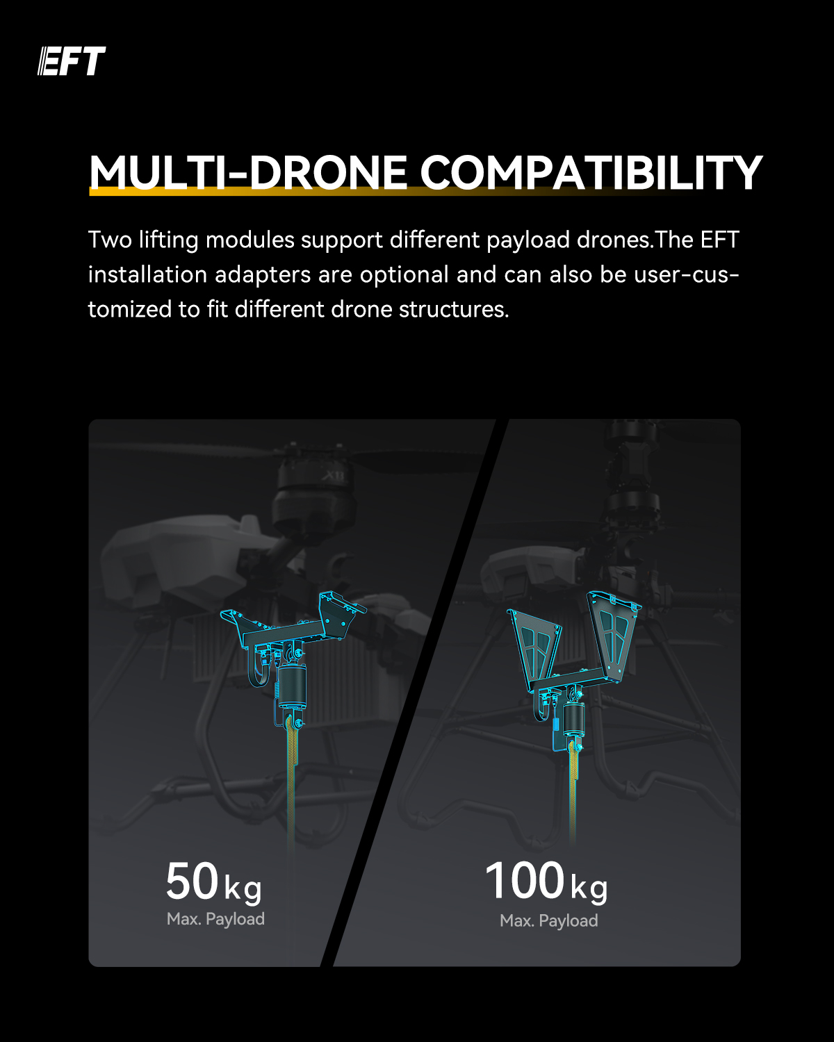 EFT Newly Smart Lifting Module ELM50/100 Professional Design for Cargo Drone with Real-Time Weighing Module 50kg/100kg Payload